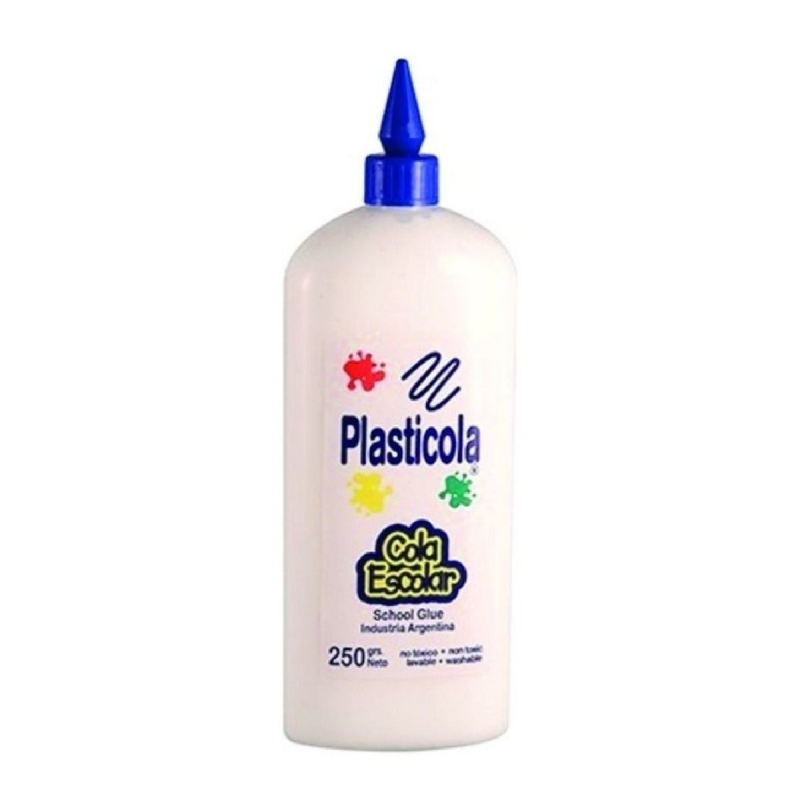 Plasticola es un adhesivo vinílico ideal para el uso escolar. Es muy fácil de maniobrar para los chicos, gracias a su pico dosificador, es la mejor opción para pegar en superficies puntuales o pequeñas permitiendo un pegado preciso y prolijo sin arrugar el papel. No es tóxico, no contiene solventes y es fácilmente lavable.