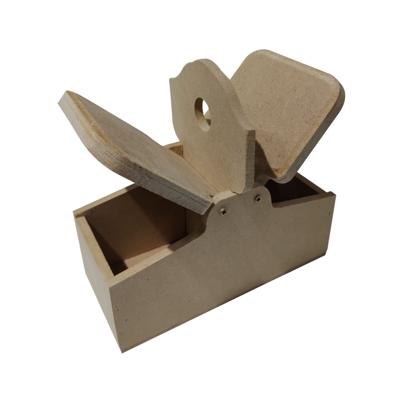 Yerbera pequeña de dos tapas con bisagras y manija.