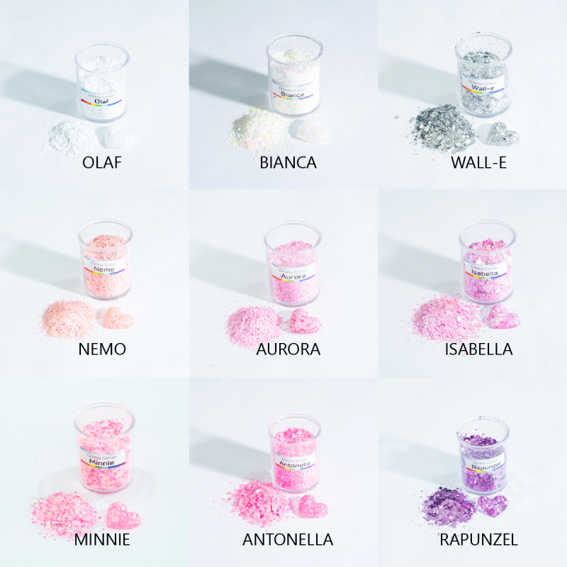 (0341) 387-3329Glossy glitters, o también conocidos como "chunky gliters" son brillos con gramaje superior a los glitters que conocemos generalmente.