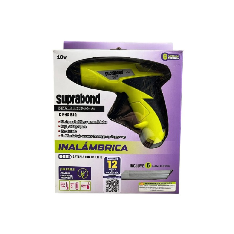 Pistola Econcoladora Suprabond INALÁMBRICA, ideal para manualidades, decoración y reparaciones rápidas en el hogar.