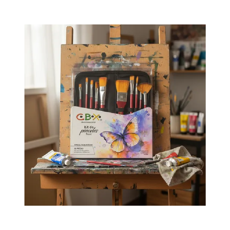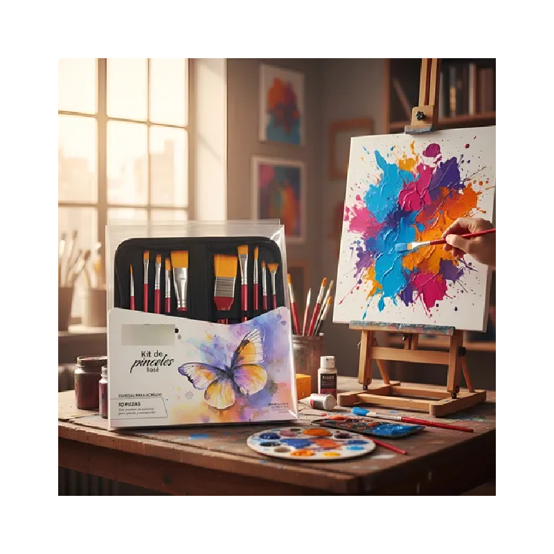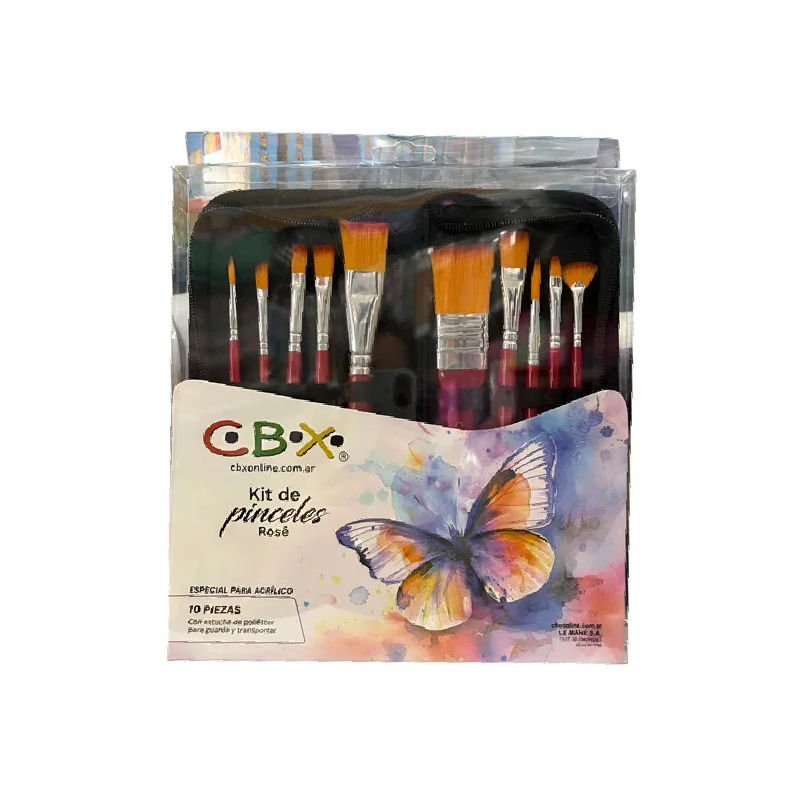 Contiene 10 pinceles surtidos,redondo/angular/plano/plano largo/redondo mediano/plano corto/chato/lengua de gato/plano grande.