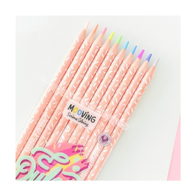 (0341) 387-3329Lápices de colores pasteles Mooving de cuerpo circular, elaborados con suave madera colorada de tilo de la máxima calidad y resistencia, formula especial que garantiza el fácil sacado de punta de colores pastel bien logrados e intensos con gran poder cubritivo. Sus minas de 3.3 mm. de alta resistencia son suaves y blandas, brindando la mejor sensación en su trazado.