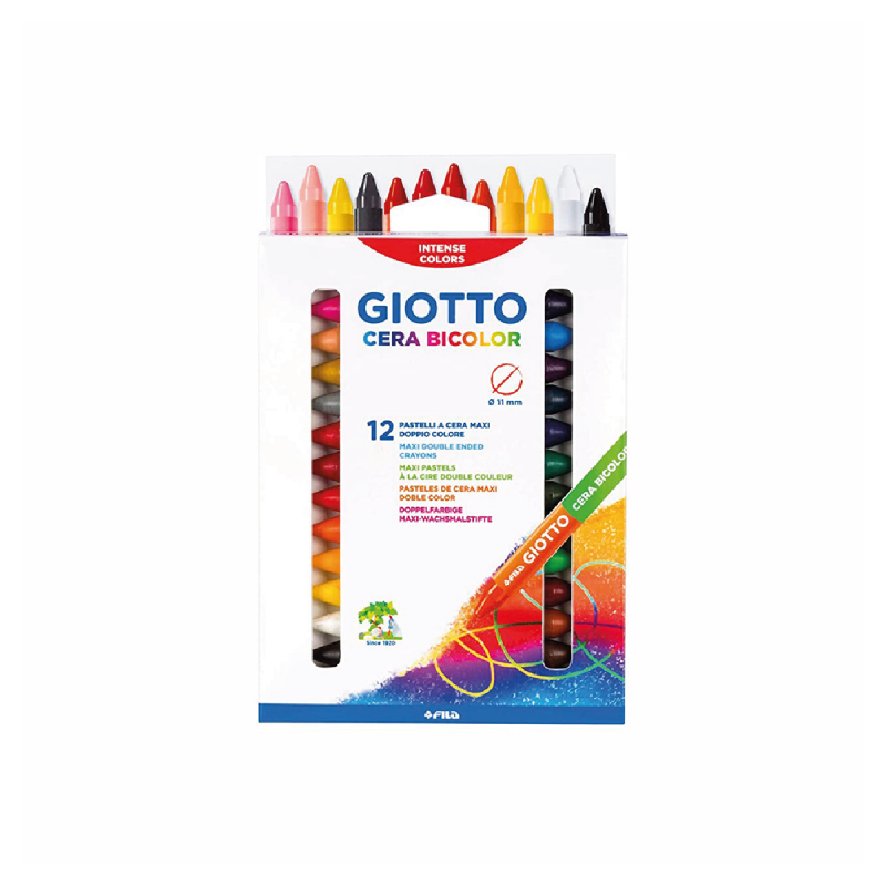 (0341) 387-3329Cera Bicolor: un crayón extra grueso, de 11.5mm de diámetro, con doble punta, una de cada color. En total contiene 24 intensos colores!