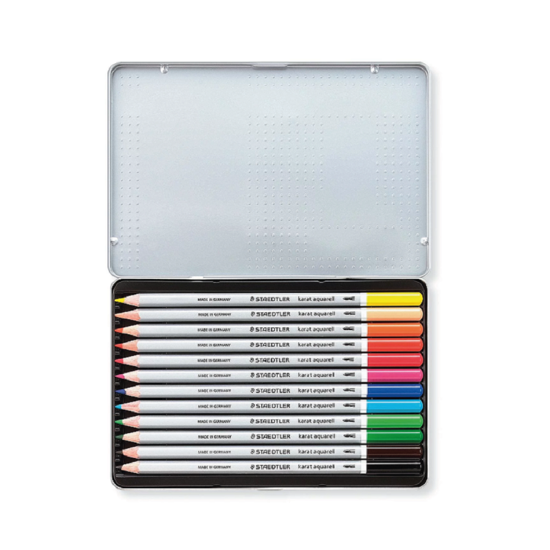 (0341) 387-3329Caja de metal contiene 12 colores surtidos.
