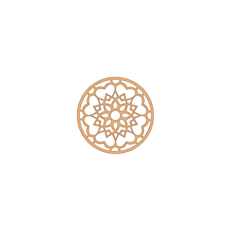 Mandala circular de fibrofácil con corte y grabado láser, en 3 mm de espesor.