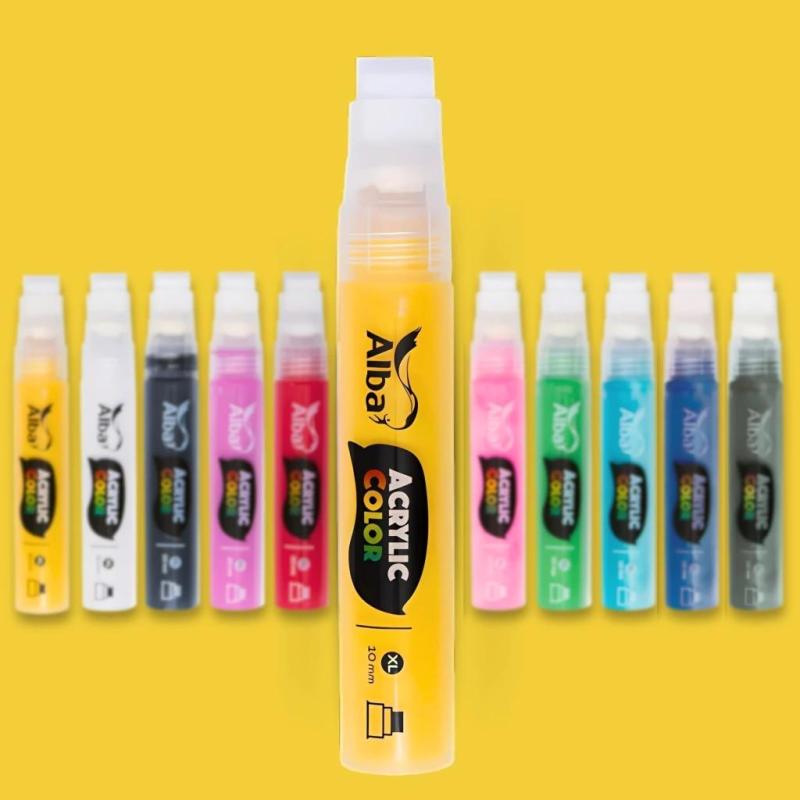 Los marcadores Alba Acrylic Color son recargables y se fabricaron para ser rellenados muchas veces sin desgaste, sin pérdidas y manteniendo la misma calidad. Las recargas permiten mezclar y crear tus propios colores. Además sus colores son intensos y compatibles con la línea de Acrílicos Decoralba.