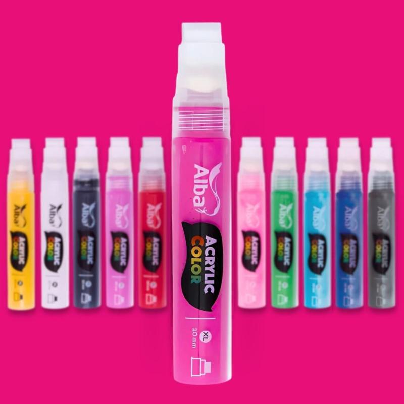 Los marcadores Alba Acrylic Color son recargables y se fabricaron para ser rellenados muchas veces sin desgaste, sin pérdidas y manteniendo la misma calidad. Las recargas permiten mezclar y crear tus propios colores. Además sus colores son intensos y compatibles con la línea de Acrílicos Decoralba.