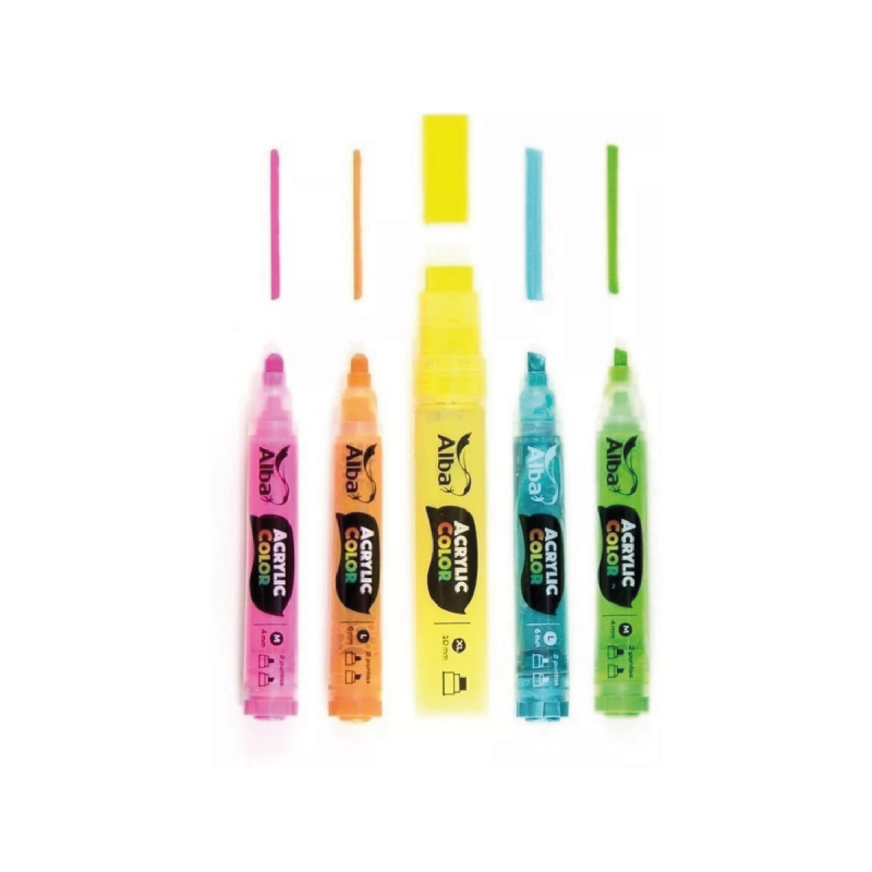 (0341) 387-3329Los marcadores Alba Acrylic Color son recargables y se fabricaron para ser rellenados muchas veces sin desgaste, sin pérdidas y manteniendo la misma calidad. Las recargas permiten mezclar y crear tus propios colores. Además sus colores son intensos y compatibles con la línea de Acrílicos Decoralba.