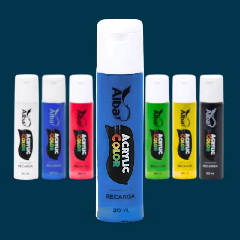 Las recargas Acrylic Color te permiten reutilizar los marcadores Acrylic Color, primero desenroscas la tapa del marcador y cargás pintura hasta la marca "MAX". Los marcadores Alba Acrylic Color son ecológicos: podés seguir usando los marcadores con las recargas sin desecharlos. También te permiten mezclar los colores y armar tu propia paleta.