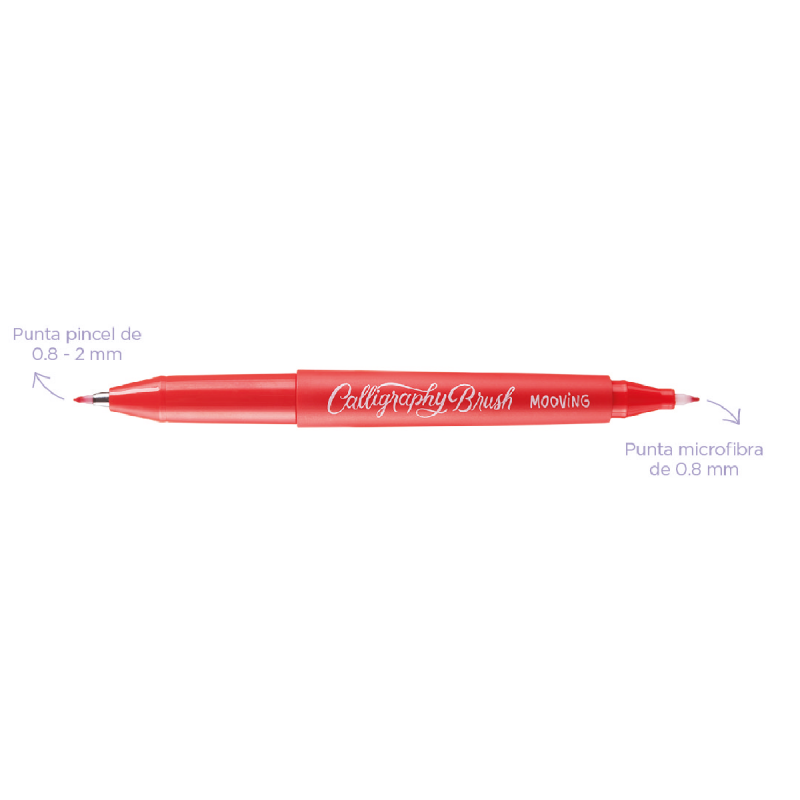 Cada marcador tiene en un extremo la punta pincel y del otro una microfibra con punta de 0.8 mm.