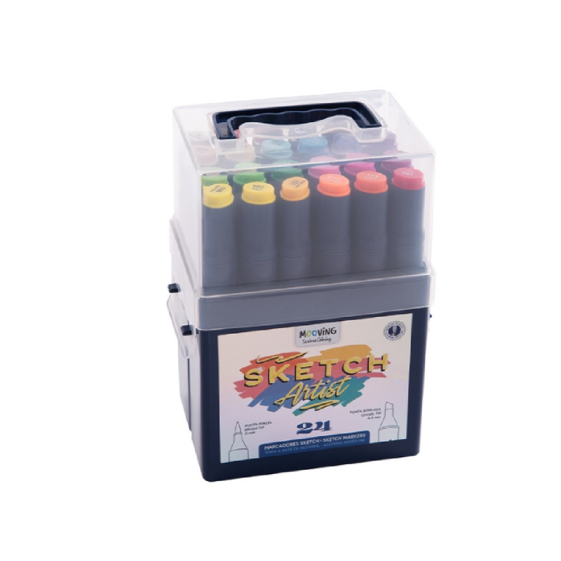 Punta biselada para trazos planos e integración del color, y punta pincel para detalles suaves.