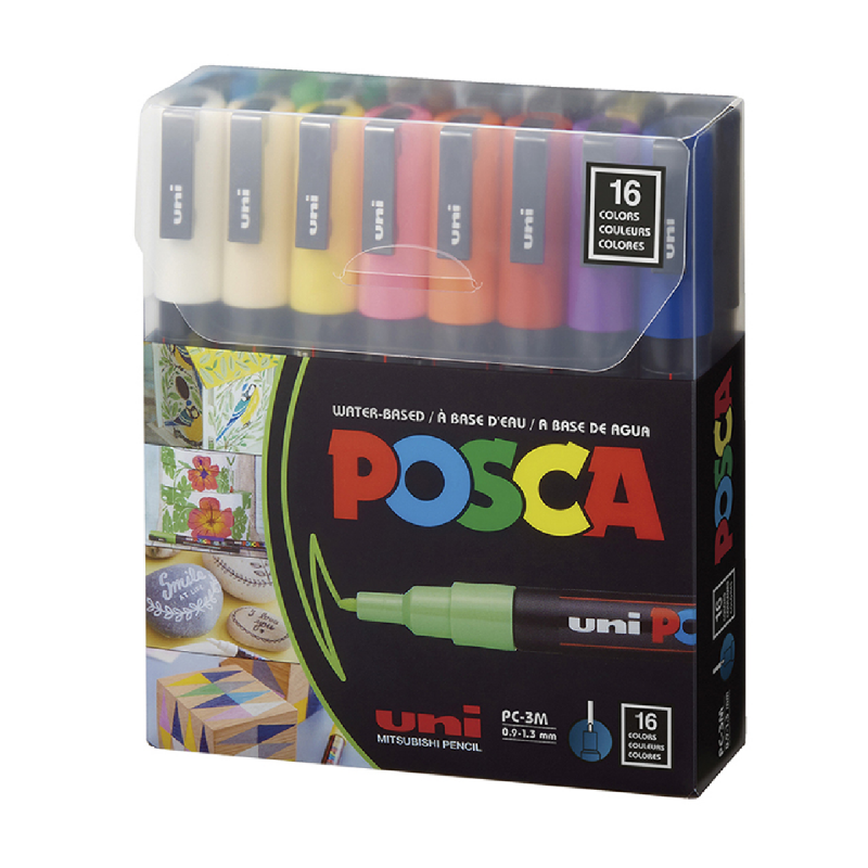 La versátil punta cónica de los marcadores Uni POSCA ofrece una libertad de uso ilimitada y se adapta a todo tipo de creaciones. Disponibles una gran variedad de colores que se pueden mezclar y superponer, con tinta soluble en agua y no tóxica que se seca rápidamente y puede utilizarse en una amplia variedad de superficies. Los marcadores POSCA de pintura a base de agua son adecuados para la mayoría de los proyectos de arte y artesanía en más de 50 superficies, incluyendo madera, vidrio, metal, plástico, cerámica, cuero y más. El secado rápido los hace ideales para trabajos de interior y exterior.