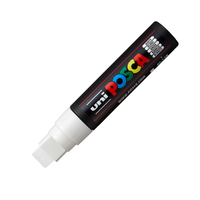 El marcador de pintura de punta de cincel extra ancha uni POSCA contiene tinta de pigmento a base de agua que es resistente a la luz y al agua, y escribirá en casi cualquier superficie. El PC-17K de punta de cincel extra ancha, de 17 mm, es el marcador ideal para obras de arte a gran escala. Su punta de tamaño XL produce una línea fuerte y segura y un color vivo.