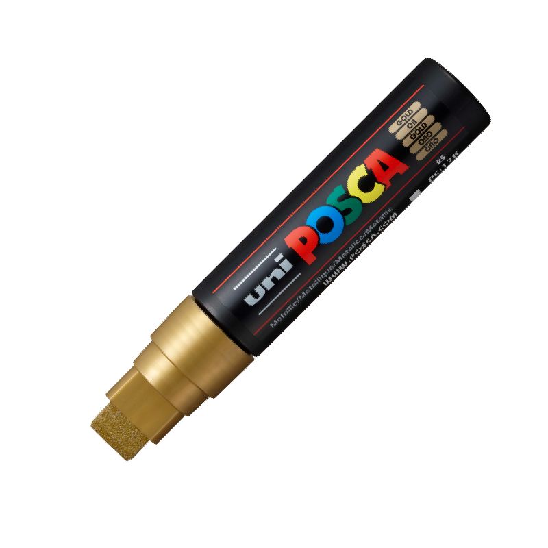 El marcador de pintura de punta de cincel extra ancha uni POSCA contiene tinta de pigmento a base de agua que es resistente a la luz y al agua, y escribirá en casi cualquier superficie. El PC-17K de punta de cincel extra ancha, de 17 mm, es el marcador ideal para obras de arte a gran escala. Su punta de tamaño XL produce una línea fuerte y segura y un color vivo.