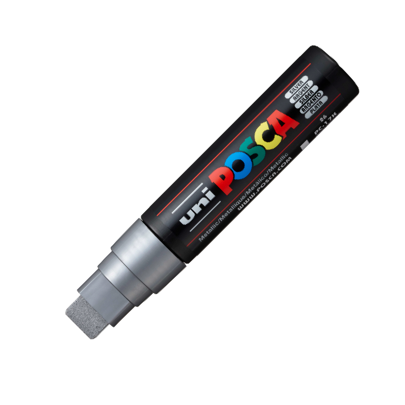 El marcador de pintura de punta de cincel extra ancha uni POSCA contiene tinta de pigmento a base de agua que es resistente a la luz y al agua, y escribirá en casi cualquier superficie. El PC-17K de punta de cincel extra ancha, de 17 mm, es el marcador ideal para obras de arte a gran escala. Su punta de tamaño XL produce una línea fuerte y segura y un color vivo.