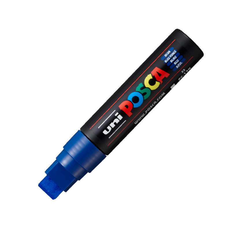 El marcador de pintura de punta de cincel extra ancha uni POSCA contiene tinta de pigmento a base de agua que es resistente a la luz y al agua, y escribirá en casi cualquier superficie. El PC-17K de punta de cincel extra ancha, de 17 mm, es el marcador ideal para obras de arte a gran escala. Su punta de tamaño XL produce una línea fuerte y segura y un color vivo.