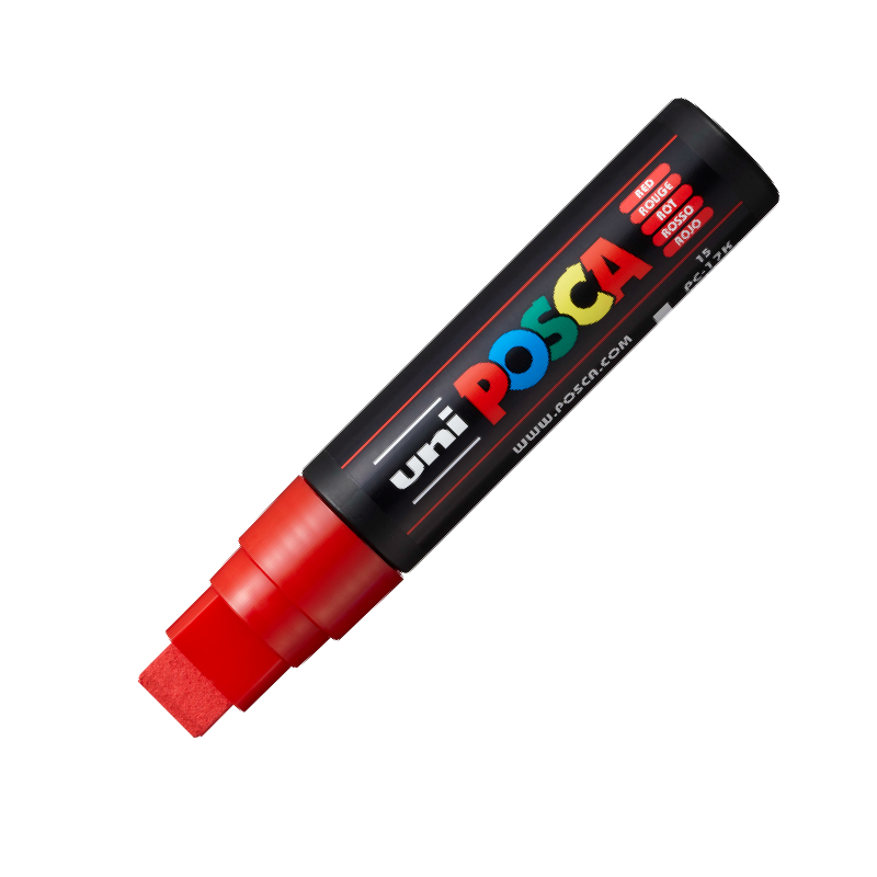 El marcador de pintura de punta de cincel extra ancha uni POSCA contiene tinta de pigmento a base de agua que es resistente a la luz y al agua, y escribirá en casi cualquier superficie. El PC-17K de punta de cincel extra ancha, de 17 mm, es el marcador ideal para obras de arte a gran escala. Su punta de tamaño XL produce una línea fuerte y segura y un color vivo.