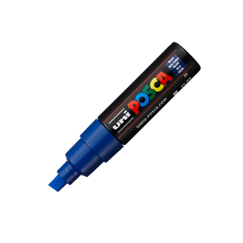 Con su punta ancha biselada, el PC-8K no solo puede trazar curvas claras con un efecto gráfico de caligrafía; también puede cubrir grandes superficies. Disponible en una gran gama de colores, es ideal para colores plenos, marcas de todo tipo y por supuesto, street art y lettering.