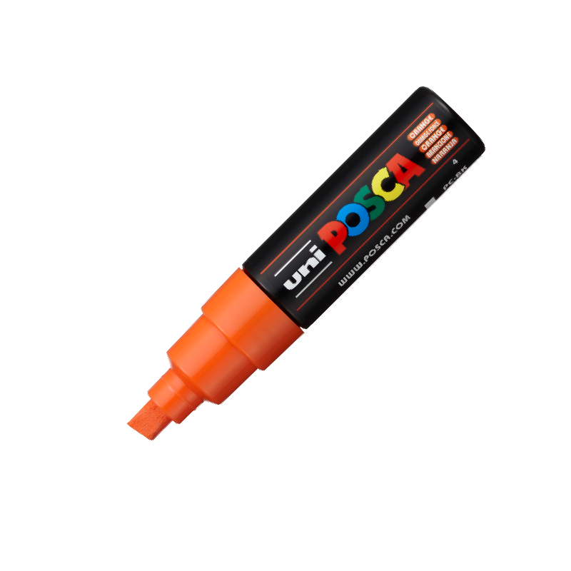 Con su punta ancha biselada, el PC-8K no solo puede trazar curvas claras con un efecto gráfico de caligrafía; también puede cubrir grandes superficies. Disponible en una gran gama de colores, es ideal para colores plenos, marcas de todo tipo y por supuesto, street art y lettering.