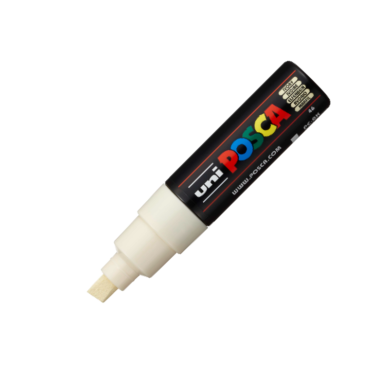 Con su punta ancha biselada, el PC-8K no solo puede trazar curvas claras con un efecto gráfico de caligrafía; también puede cubrir grandes superficies. Disponible en una gran gama de colores, es ideal para colores plenos, marcas de todo tipo y por supuesto, street art y lettering.