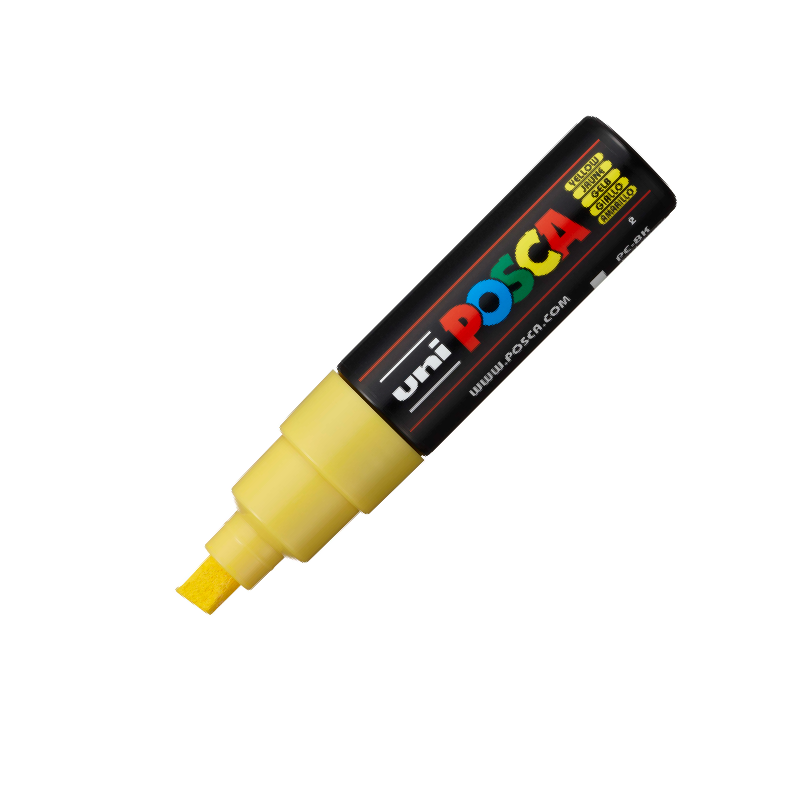 Con su punta ancha biselada, el PC-8K no solo puede trazar curvas claras con un efecto gráfico de caligrafía; también puede cubrir grandes superficies. Disponible en una gran gama de colores, es ideal para colores plenos, marcas de todo tipo y por supuesto, street art y lettering.