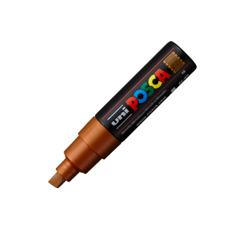 Con su punta ancha biselada, el PC-8K no solo puede trazar curvas claras con un efecto gráfico de caligrafía; también puede cubrir grandes superficies. Disponible en una gran gama de colores, es ideal para colores plenos, marcas de todo tipo y por supuesto, street art y lettering.