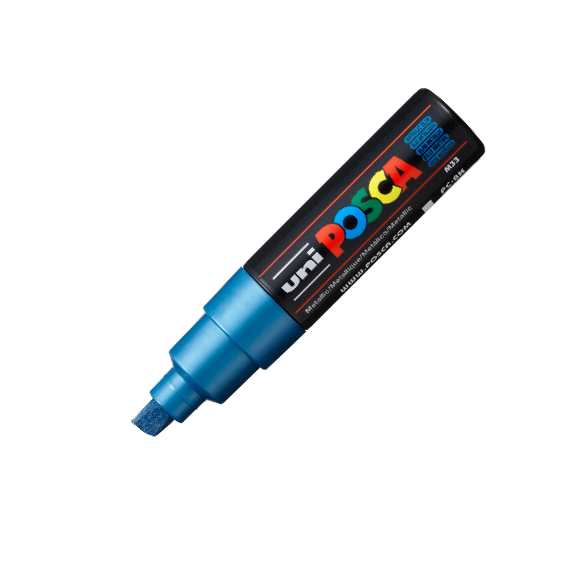 Con su punta ancha biselada, el PC-8K no solo puede trazar curvas claras con un efecto gráfico de caligrafía; también puede cubrir grandes superficies. Disponible en una gran gama de colores, es ideal para colores plenos, marcas de todo tipo y por supuesto, street art y lettering.
