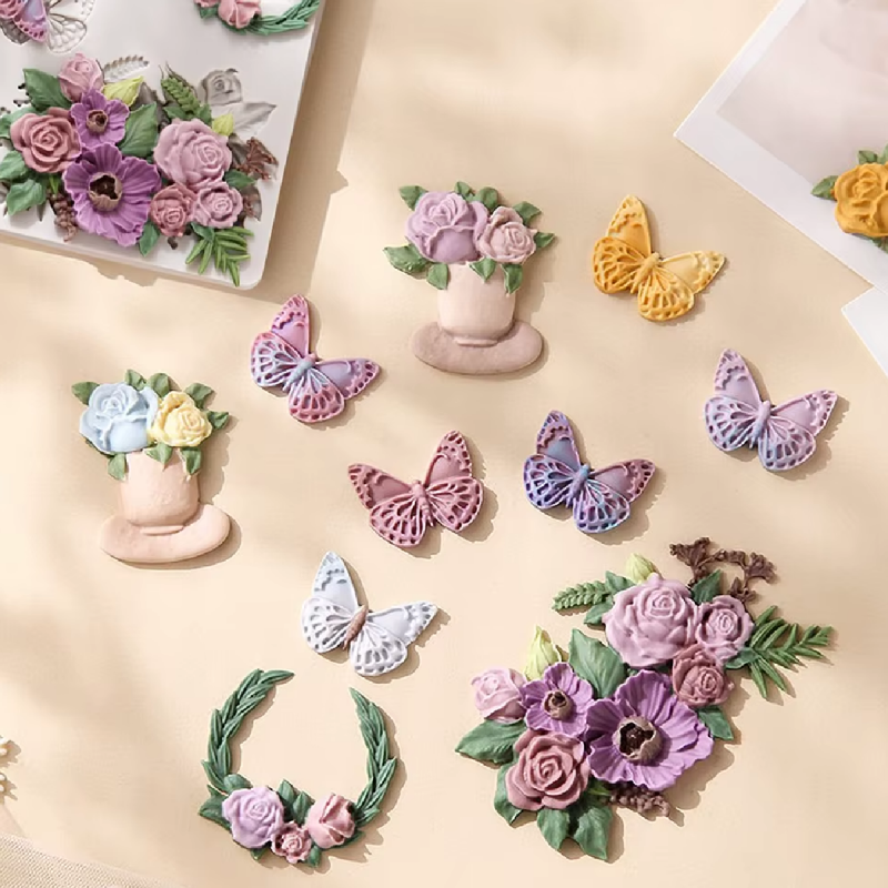 Molde de silicona rígido y a la vez flexible de una única pieza con cavidades para poder realizar con masas ( arcilla polimérica horneable, porcelana fría, arcillas al agua, resina al agua, silicona líquida o barra de silicona...)