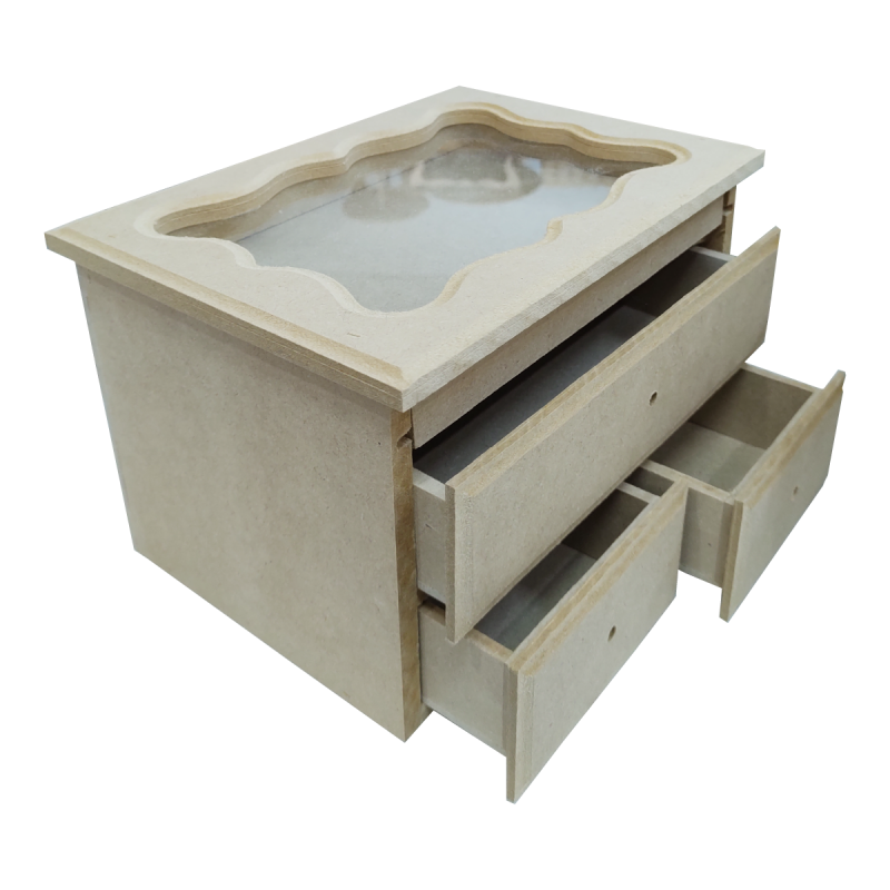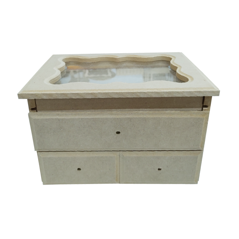 Cajonera horizontal x 2 cajones y vidrio en la parte superior.