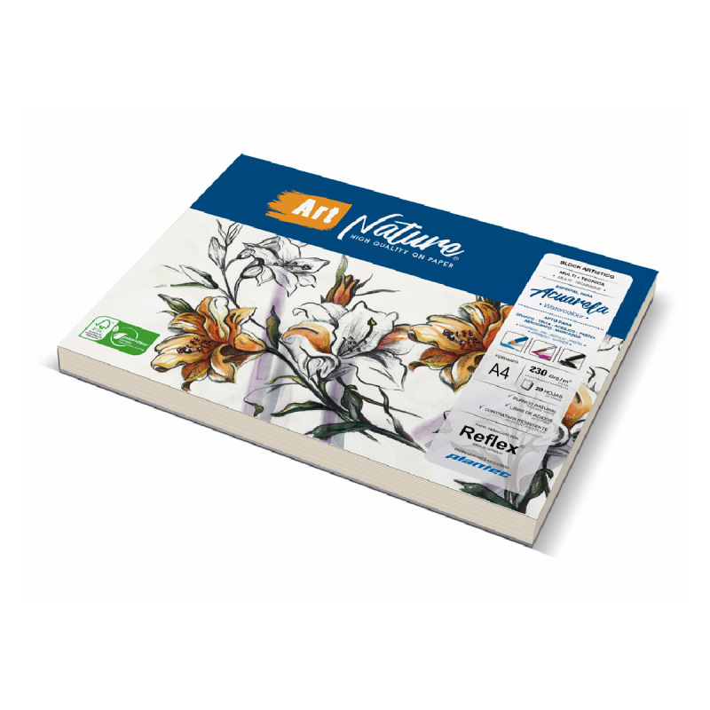 ART NATURE Artístico es un papel ideal para todas las técnicas por su gran performance de uso. Se trata de un genuino papel Mix Media, por su gran resistencia al trazado y borrado intenso y reiterado. Es el papel más utilizado para el dibujo lineal y artístico, ya que realza la aplicación de todos los elementos de escritura y pintura. No se utilizan ácidos ni cloro para su fabricación, lo que lo hace resistente al envejecimiento sin amarilleos por el paso del tiempo. Multitécnicas : acuarela – acuarelable, lápiz, tintas, pasteles, marcadores e impresión en offset, acrílico y pinturas.