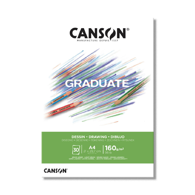 (0341) 387-3329Los blocs Canson Graduate Dessin ofrecen un papel de dibujo blanco, resistente y de grano ligero. Su superficie resiste al borrado repetido sin llegar a raspar. ¡Estos blocs están compuestos por 30 hojas y son ideales para dibujar y obtener una creación con colores vibrantes!