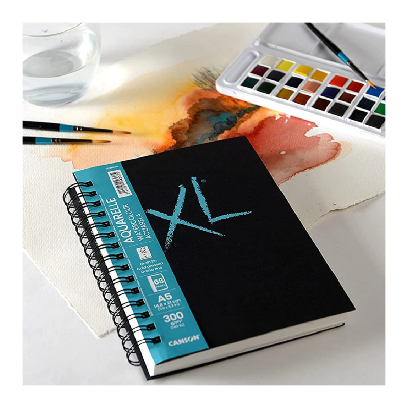 XL Book Acuarela contiene un papel de 300gr con grano fino, libre de ácido y gran capacidad de borrado en húmedo.