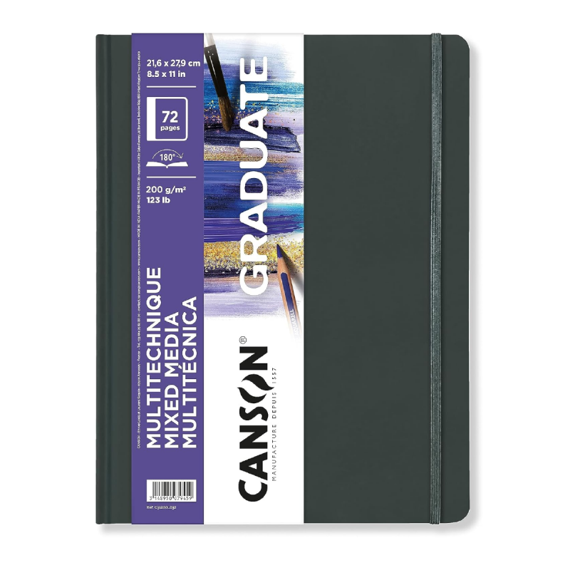 Si te gusta combinar técnicas (pintura, acuarela, dibujo, collage, rotuladores, etc.), el cuaderno Canson Graduate Mixed Media blanco es para ti. Su papel resistente y de grano ligero es ideal para todo tipo de materiales artísticos. El color blanco de las páginas es ideal para los principiantes que buscan ilustraciones vibrantes.