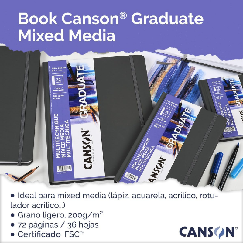 Los ultra versátiles cuadernos Canson Graduate Mixed Media en papel blanco te permiten crear todo tipo de obras combinando técnicas fácilmente. Pintura, dibujo, collage... ¡deja que hable tu creatividad!