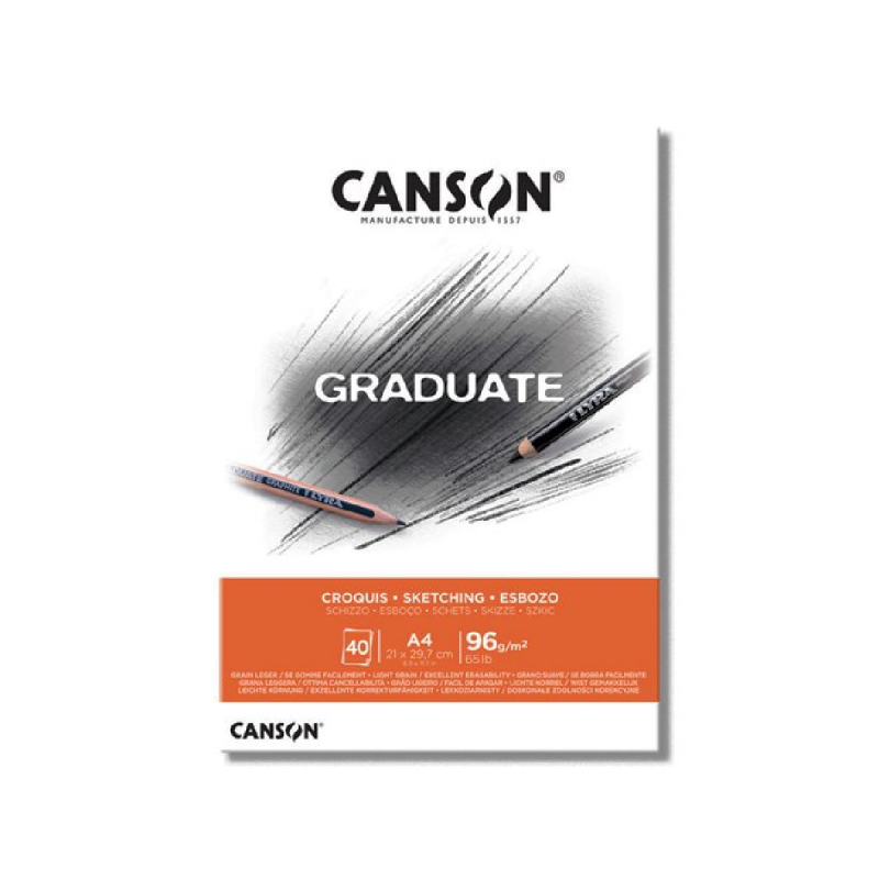 (0341) 387-3329Los blocs Canson Graduate Esbozo ofrecen un papel blanco de escaso gramaje y ligeramente esponjoso. Compuestos por 40 hojas de papel de grano ligero y fácil de borrar, serán el soporte ideal cuando desees realizar un boceto rápido a lápiz.